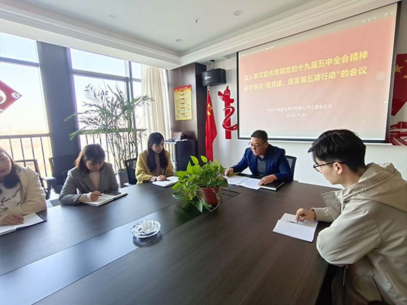 11月2號上午,中威建設集團有限公司支部委員會組織全體職員,召開了關于學習“ 強黨建、促發(fā)展五項行動 ”會議。會議由支部書記白德華同志主持,深入學習了黨的十九屆五中全會精神,強調要堅持以黨建引 領企業(yè)發(fā)展壯大,推進組織建設與企業(yè)發(fā)展深度融合的重要思想。
