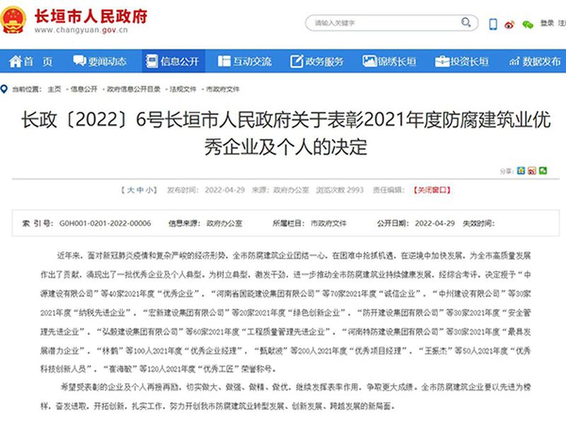 近日,長垣市人民政府發文表彰了2021年度防腐建筑業優秀企業及個人的決定,中威集團榮膺“2021年度優秀企業”、“2021年度納稅先進企業”、“2021年度安全管理先進企業”、“2021年度最具發展潛力企業”四項殊榮,中威集團總經理田海威榮獲“長垣市2021年度優秀企業經理”榮譽稱號。