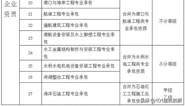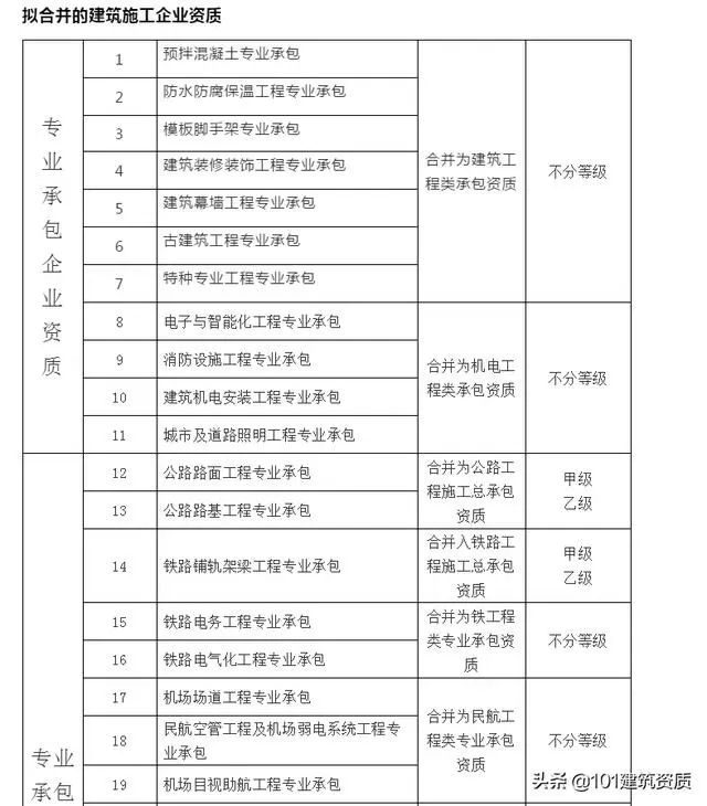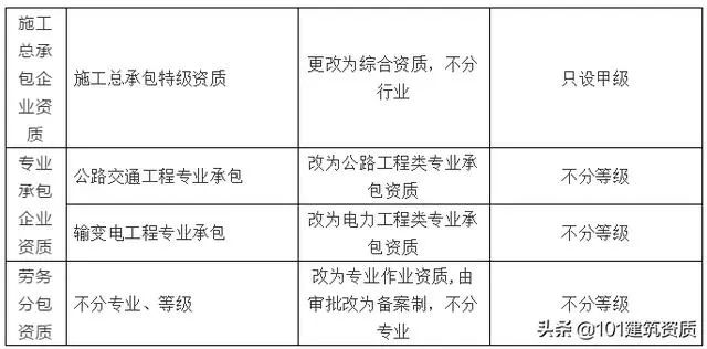 2、建筑總承包特級資質改為綜合資質,不分行業、只設甲級,承攬項目范圍無限擴大。