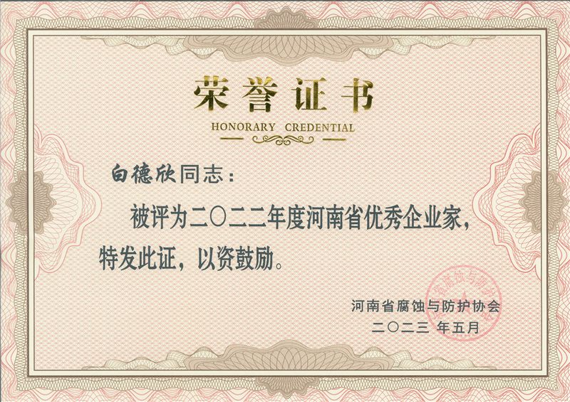 會議上,協(xié)會黨支部書記徐勝利宣讀了《關(guān)于表彰 2022年度先進(jìn)單位和先進(jìn)個人的決定》,對2022年度為河南省防腐行業(yè)發(fā)展做出突出貢獻(xiàn)的先進(jìn)單位和個人進(jìn)行表彰并現(xiàn)場頒獎。中威集團(tuán)董事長白德欣再次榮獲“河南省優(yōu)秀企業(yè)家”榮譽(yù)稱號,中威集團(tuán)被授予“誠信企業(yè)”、“科技創(chuàng)新企業(yè)”、“工程質(zhì)量管理先進(jìn)企業(yè)”等榮譽(yù)稱號,田海威、白朝凱榮獲“科級創(chuàng)新先進(jìn)個人”,鮑慧娟、韓欣蓮榮獲“優(yōu)秀項目經(jīng)理”,高世聰、李廷巖、牛世鑫、李騰榮獲“優(yōu)秀工匠”榮譽(yù)稱號。中威集團(tuán)對此次獲獎的單位和同仁表示熱烈祝賀,這是對我們在工作中表現(xiàn)出的卓越能力和職業(yè)精神的認(rèn)可和鼓勵,希望大家再接再厲,再創(chuàng)佳績。