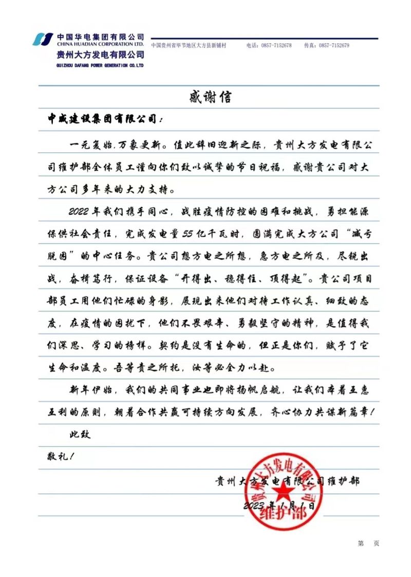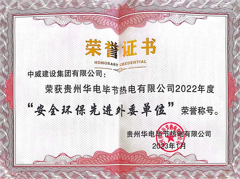 春暖花開日,喜報高掛時。近日,中威集團副總經理蘇躍及其率領的團隊為公司贏得貴州華電畢節熱電有限公司2022年度“安全環保先進外委單位”、貴州華電桐梓發電有限公司2022年度“安全生產先進單位”等榮譽稱號,項目管理人員王利召被甲方授予“外委安全生產先進個人”榮譽稱號。這些榮譽承載了全體參建人員的辛勤付出與不懈努力,既是甲方對施工團隊各項工作的充分認可,也是中威集團綜合實力的真實體現。榮譽,鞭策我們永不停歇,榮譽,激勵我們繼續前行!